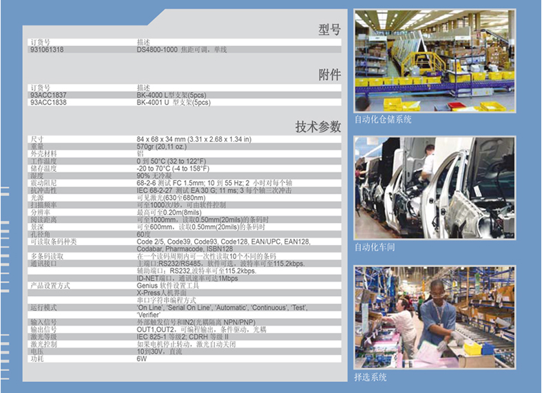 得利捷(datalogic)DS4800是為(wei) 工業(ye) 應用提供的一款靈活的緊湊型激光掃描器,滿足了製造廠商的所有主要的識別需求。DS4800具備以下特點:卓越的讀取性能,X-PRESS™界麵、設置簡單、高速ID-NET™通信接口、並可以完全抵抗周圍光線的幹擾。